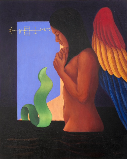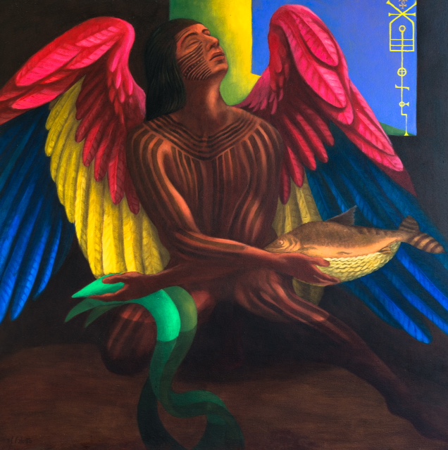 Arcanjos Amazônicos -Anunciação. Óleo/tela (80 x 1,00 m), 2007.